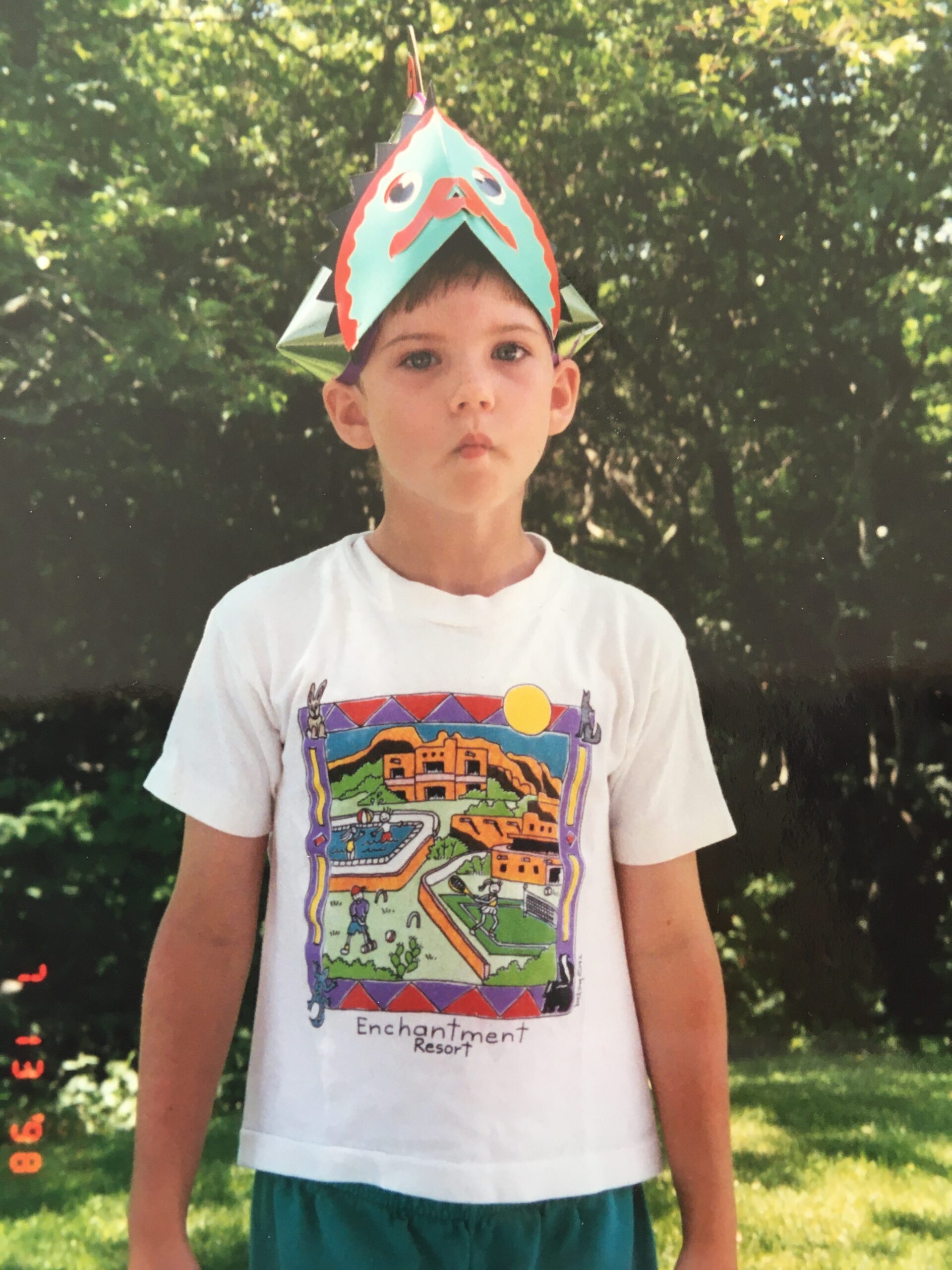 The Child demonstrating her Fish Face while modeling a Fish Head she made in school