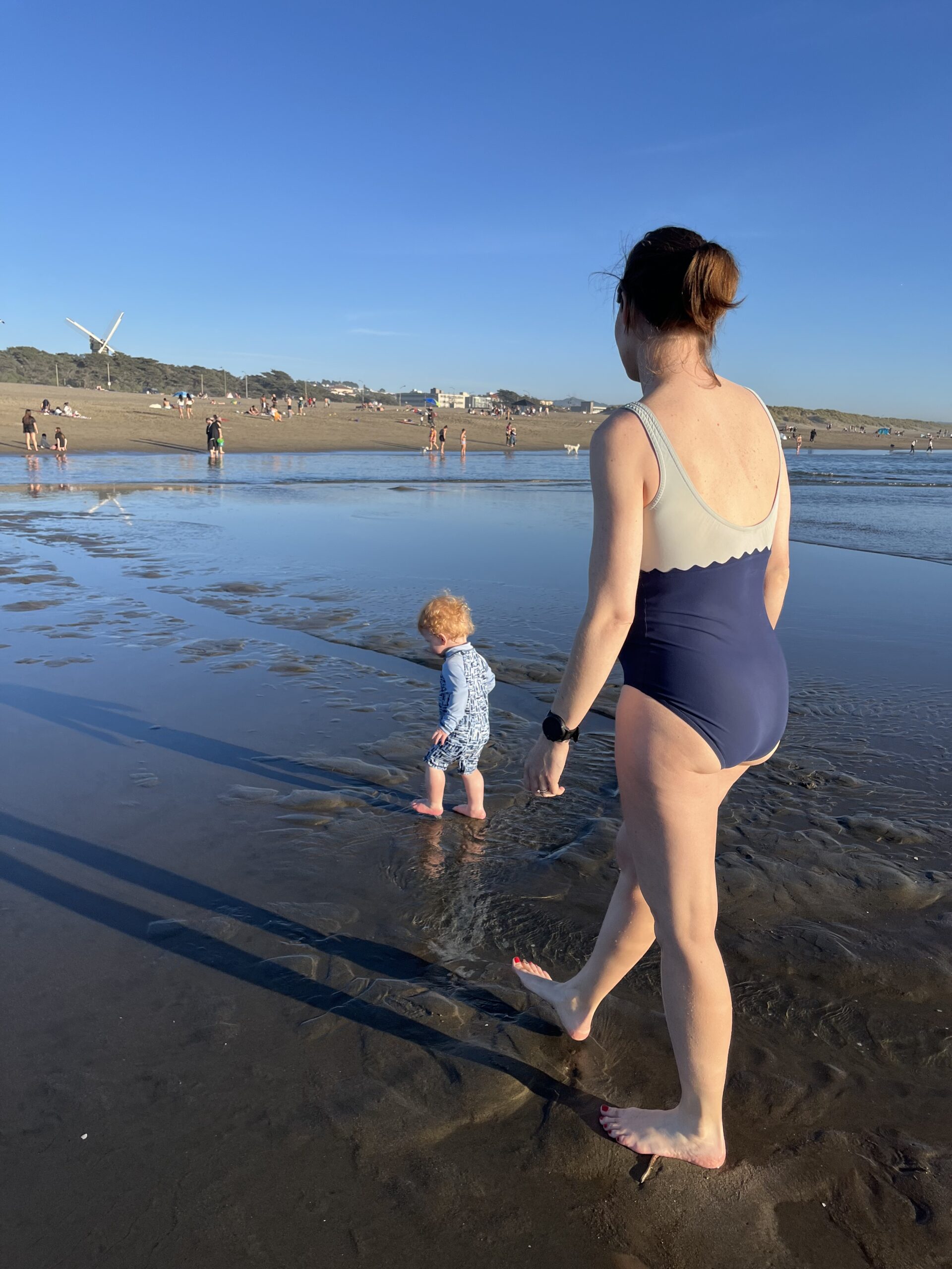 Mom and Kid testing the waters